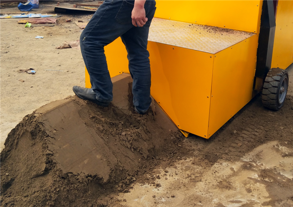 邊墻擠壓機成品超強的密實度(測試人員體重110kg,試驗物料未放置石子和水泥,確保國外現場是有無任何問題,出廠之前必須試機)